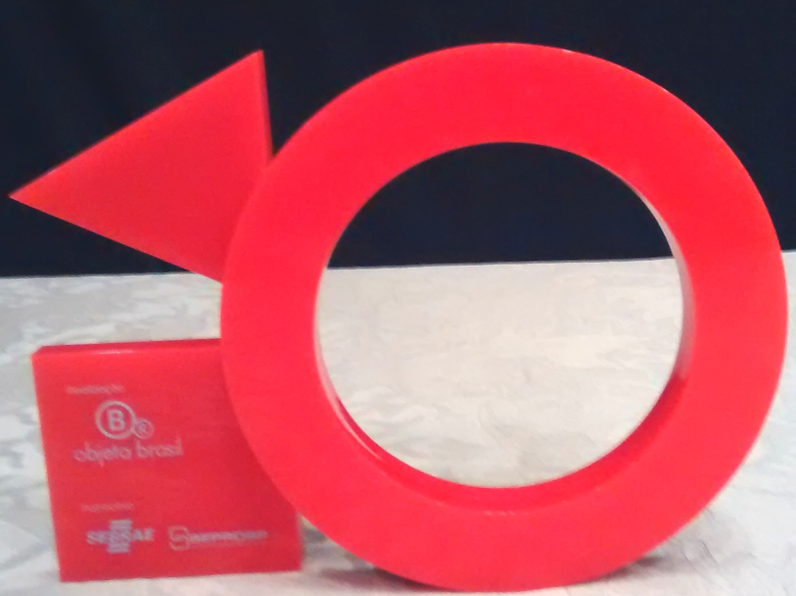 Troféu em acrílico recortado vermelho com impressão.