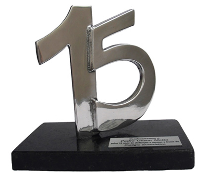 Troféu em fundição de alumínio com base de granito.