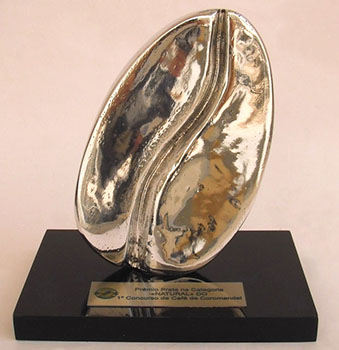 Troféu em fundição de alumínio com base de granito.