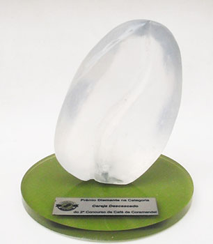 Troféu em fundição de resina com base em acrílico pintado.