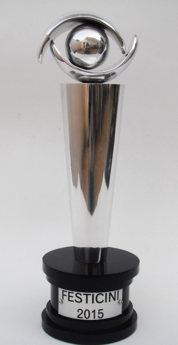 Troféu em fundição de aluminio, com base de acrílico e plaqueta de premiação.