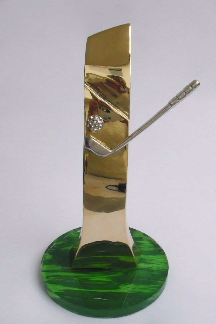 Troféu Golfe - Latão fundido com detalhes da premiação e base de resina. te09