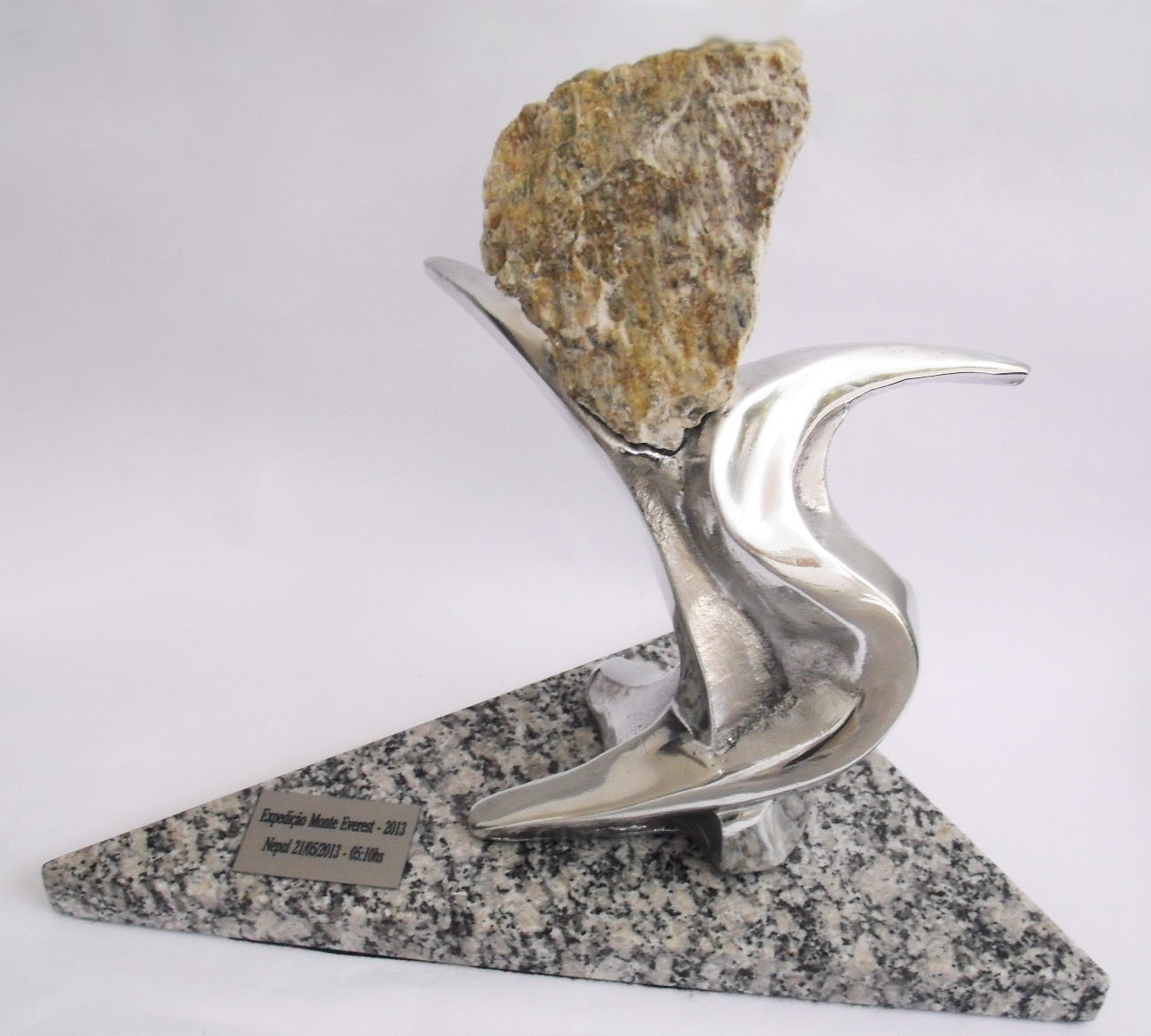 Troféu Himalaia - Troféu em fundição de alumínio com base em granito e pedra. tp01